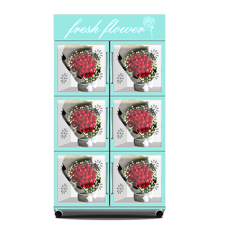 Introducing the Flowers Vending Machine, a sophisticated solution for dispensing fresh flowers, plants, floral arrangements, and even cakes. Standing at 1500mm in length, 750mm in width, and 1920mm in height, this machine offers a spacious interior with options for small models featuring 20 lockers and large models with 30 lockers. It operates efficiently with a power consumption of 350W and supports a voltage range of 110-220V, 50/60Hz.