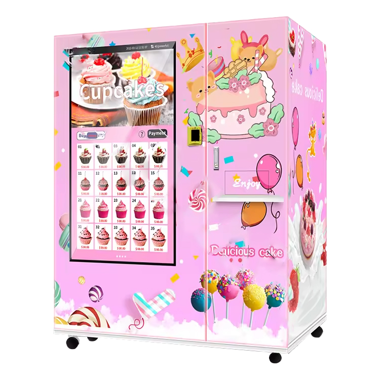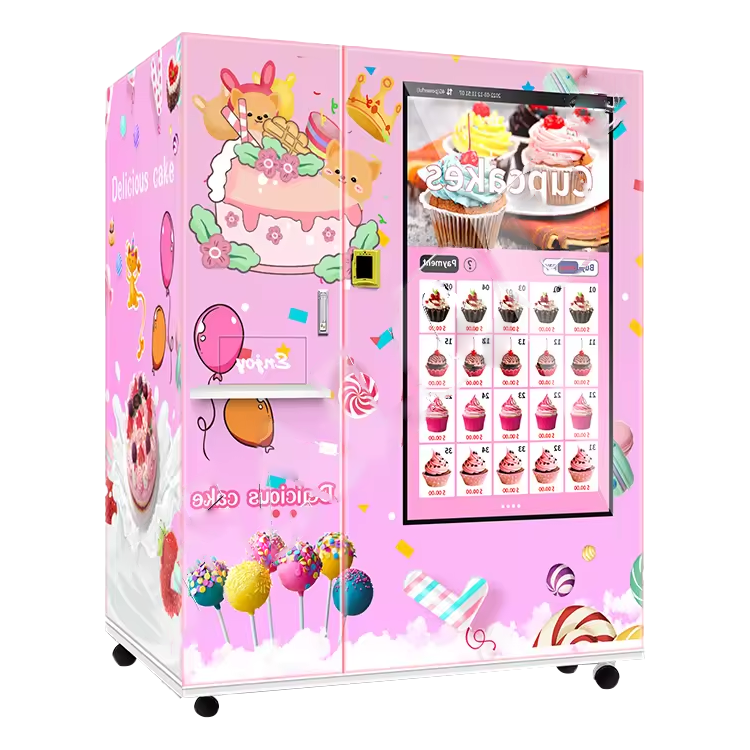 Cake vending machine is an automated device used to provide a convenient and fast cake purchasing experience. It usually includes a display cabinet with various flavors and styles of cakes, where customers can choose their favorite cakes through a touch screen or buttons. The payment methods can be cash, card swiping, or mobile payment. Once the payment is completed, the machine will automatically release the selected cake and provide a receipt.