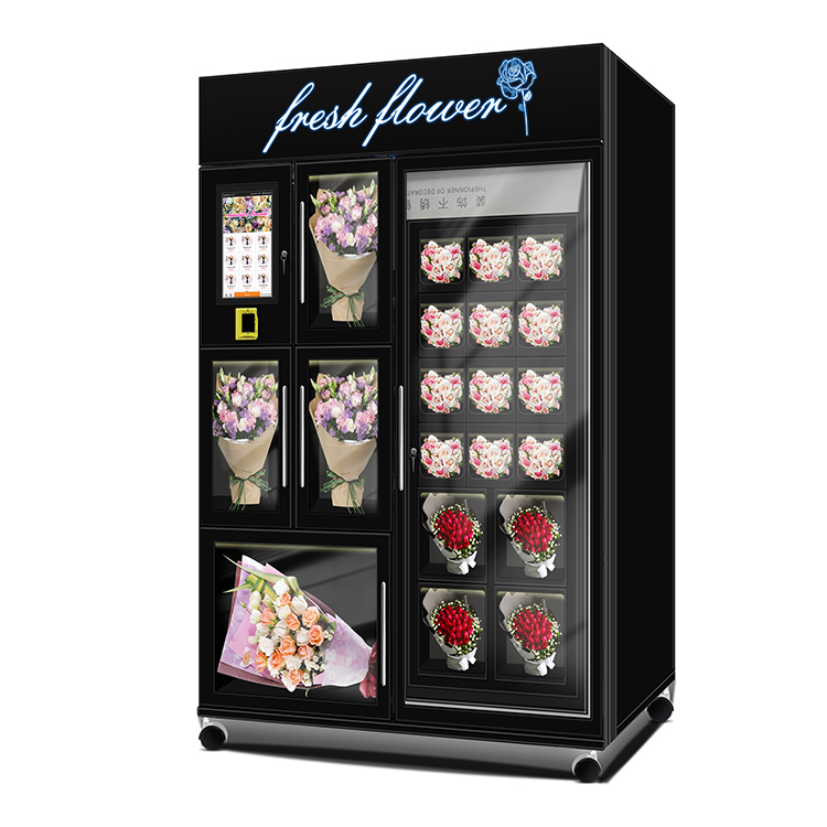 A flower vending machine is an automated device that can provide fresh flowers for consumers to purchase. This type of vending machine is usually placed in places with high traffic such as shopping malls, supermarkets, airports, train stations, etc. Consumers can select their favorite types and quantities of flowers through touch screens or buttons, and then complete payment through cash, card swiping, or mobile payments. The salesperson will automatically package the selected flowers and provide a receipt or invoice. The emergence of flower vending machines has facilitated the process of consumers purchasing flowers and provided more sales channels for flower merchants.