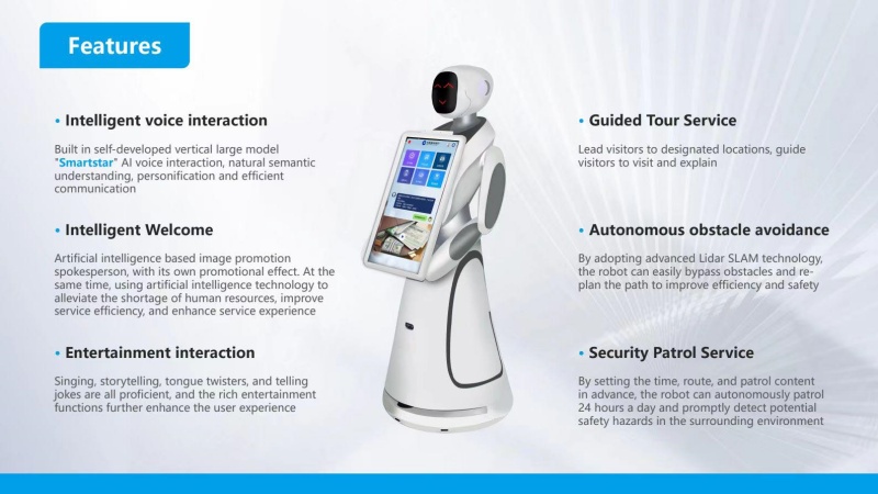 Intelligent Guiding and Concierge Services: Robots can greet guests in the hotel lobby, provide concierge services, answer frequently asked questions, and guide guests to various hotel facilities.